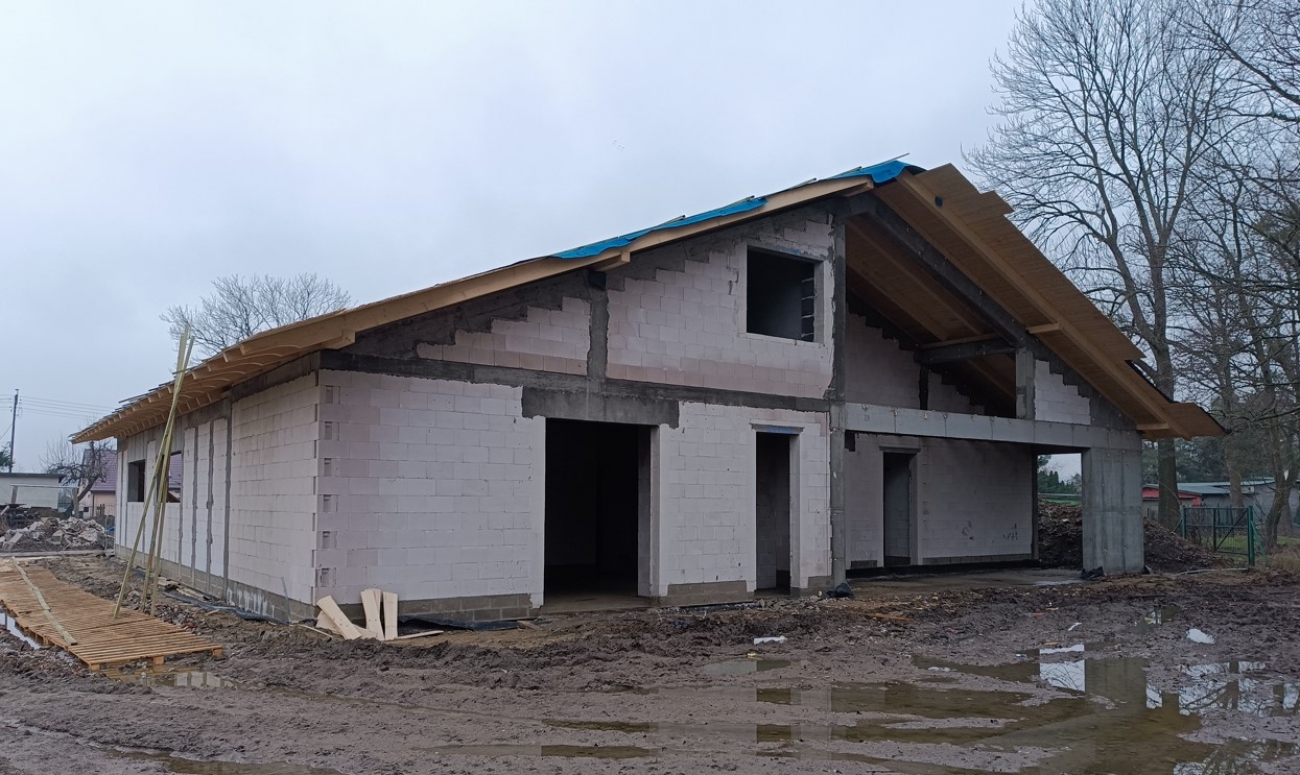Dach pokryto tradycyjną dachówką ceramiczną, natomiast elewację wykonano z cegły klinkierowej. Zestawienie widocznych elementów drewnianych, czerwonej dachówki i charakterystycznych zielonych okien stworzyło odważne, wyraziste połączenie, obok którego trudno przejść obojętnie i które idealnie wpisuje się w klimat Wojanowa.