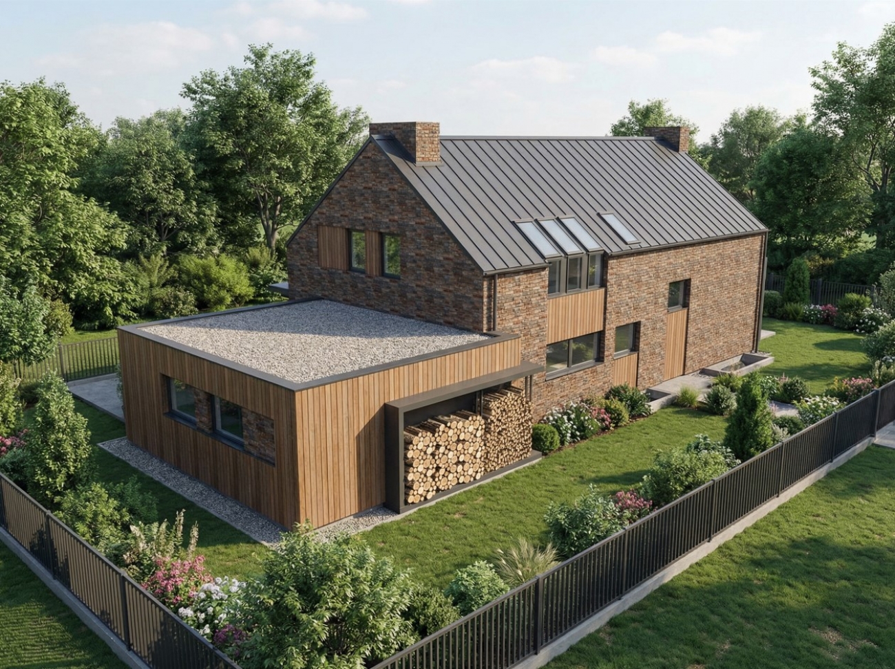 Ponadczasowa ceglana elewacja i dach z blachy na rąbek