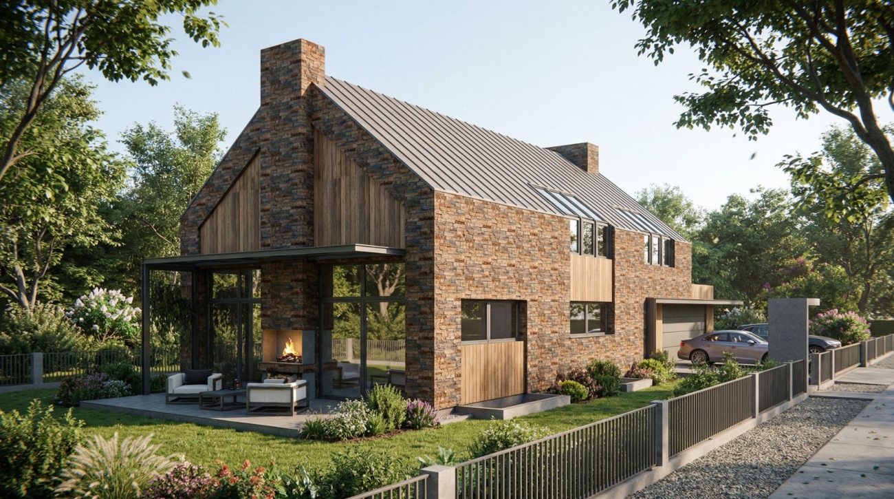 Połączenie tych materiałów sprawia, że dom jest efektowny wizualnie, a jednocześnie odporny na upływ czasu i zmienne warunki atmosferyczne.