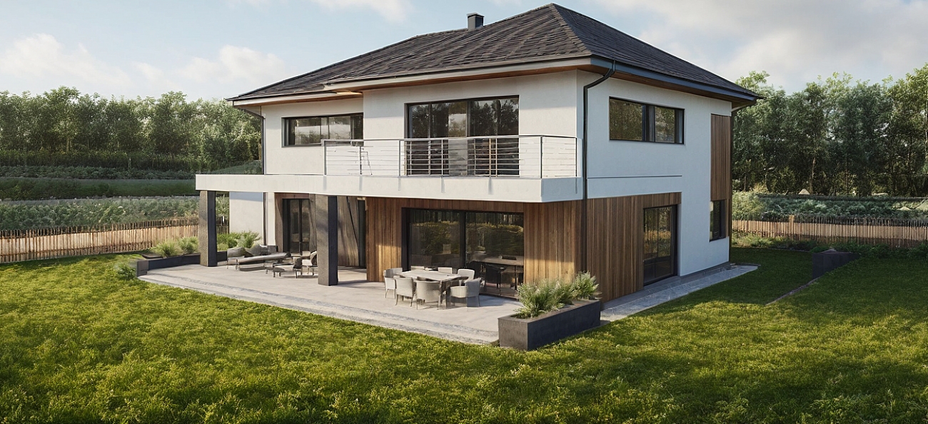 Prezentujemy indywidualny projekt domu piętrowego w Gdańsku w dzielnicy Matarnia, budynku o powierzchni blisko 300 metrów kwadratowych, stworzonego z myślą o komforcie mieszkańców i wysokiej funkcjonalności codziennego użytkowania. Dom usytuowano na obrzeżach Gdańska, co zapewnia wygodny dostęp do pełnej infrastruktury miejskiej, obwodnicy i centrum handlowego, a jednocześnie pozwala cieszyć się większą prywatnością oraz spokojną okolicą.